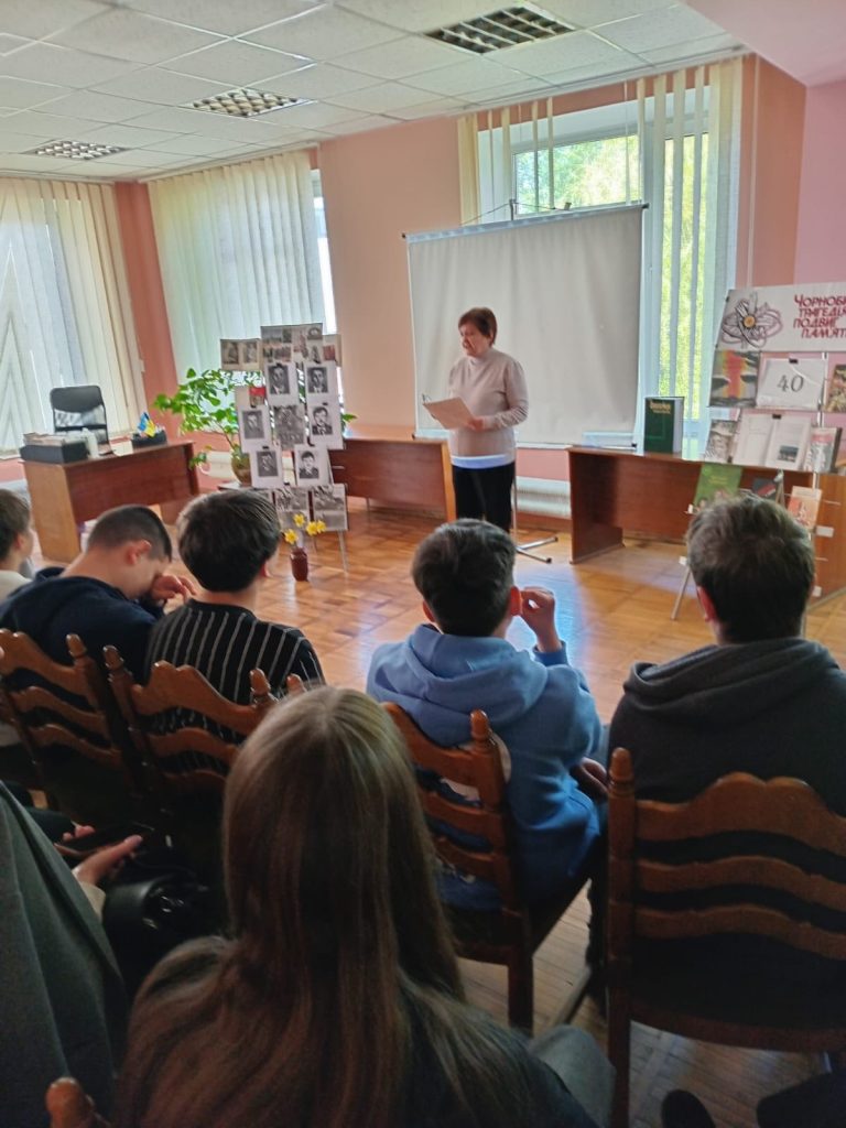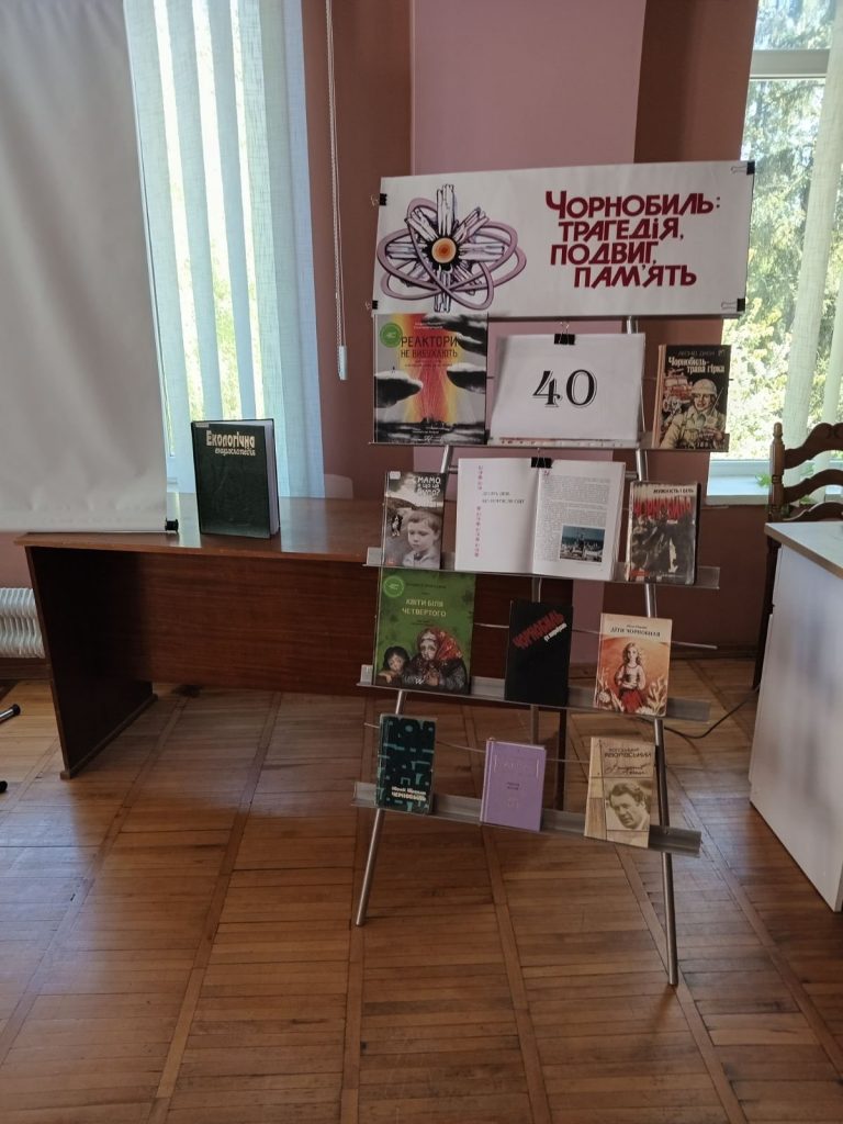 Особливу увагу ліцеїстів привернули тематичні виставки:фотоекспозиція”Герої невидимого фронту”,на якій були представлені світлини ліквідаторів та книжкова полиця-застереження “Чорнобиль:трагедія,подвиг,пам’ять”, де було зібрано художні та документальні твори про катастрофу.Ці книги були запропоновані восьмикласникам для обов’язкового прочитання,щоб зрозуміти правду про “мирний” атом не лише з підручників,а й через долі живих людей.